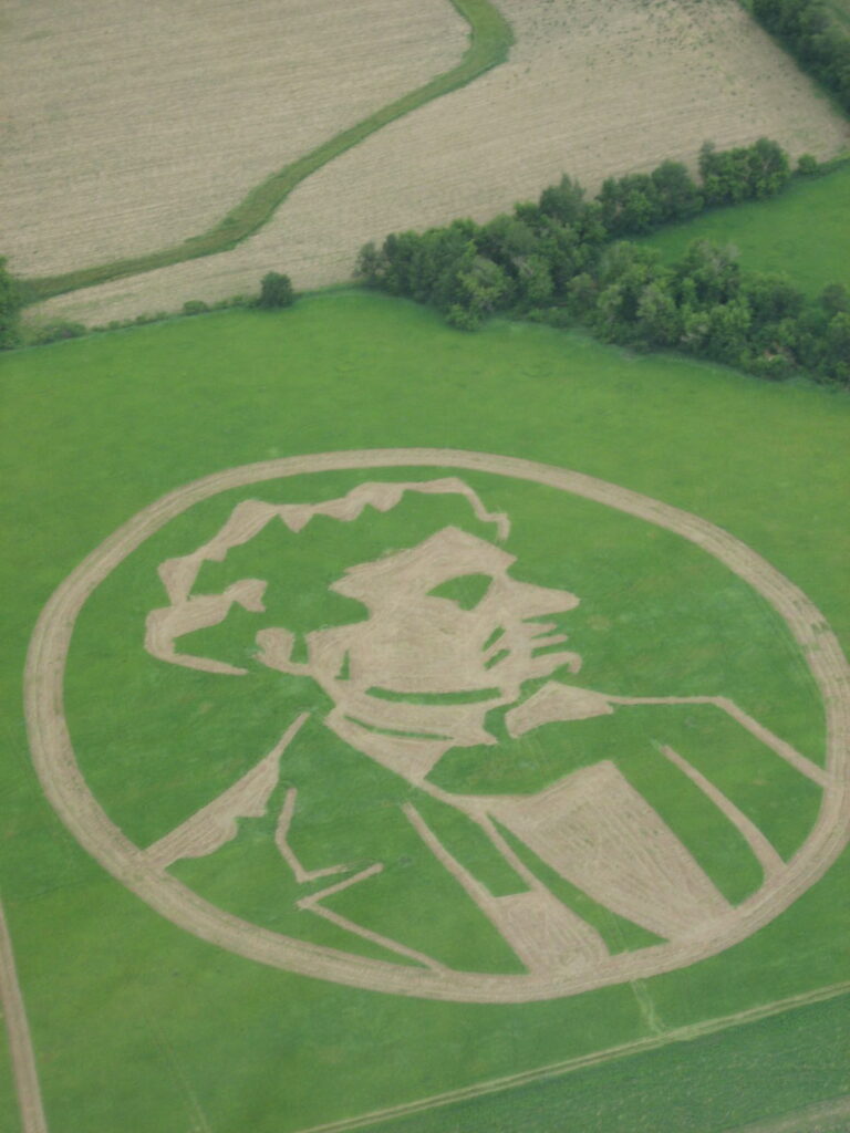 In a field in the farming community of Oregon, Illinois, this earthwork was cut into the grass by tractor. Planes flew viewers over the art.